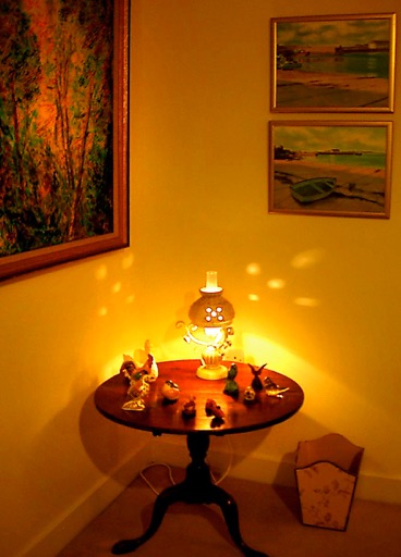 The painting on the left of this photo is the work of Cicely's husband, Marian.